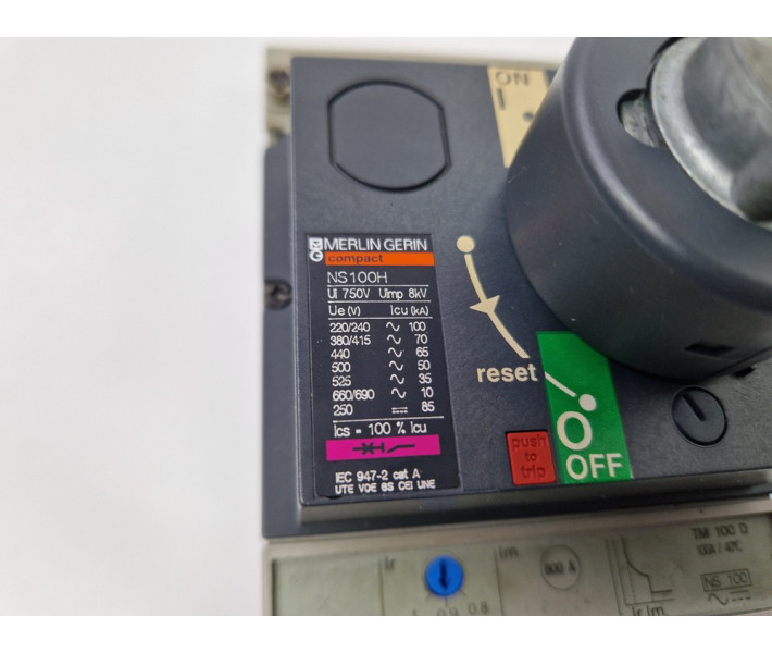 Автоматичний вимикач Merlin Gerin (Schneider Electric) Compact NS100N — це надійний промисловий автомат у литому корпусі (MCCB), призначений для захисту електричних мереж від перевантажень та коротких замикань. Бренд Merlin Gerin був інтегрований у Schneider Electric, тому сучасні аналоги випускаються під назвою ComPacT NSX100N