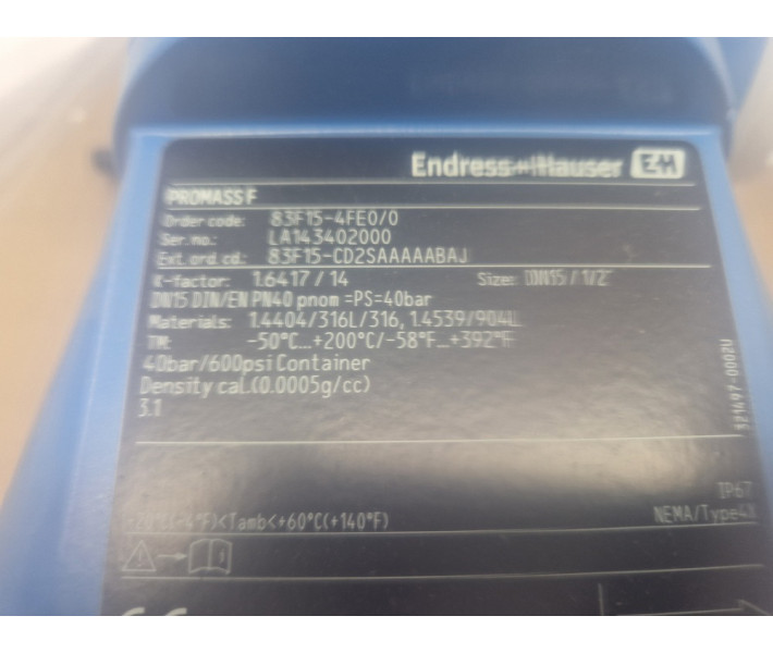 Коріолісовий масовий витратомір Endress+Hauser Promass 83F15 DN15 новий