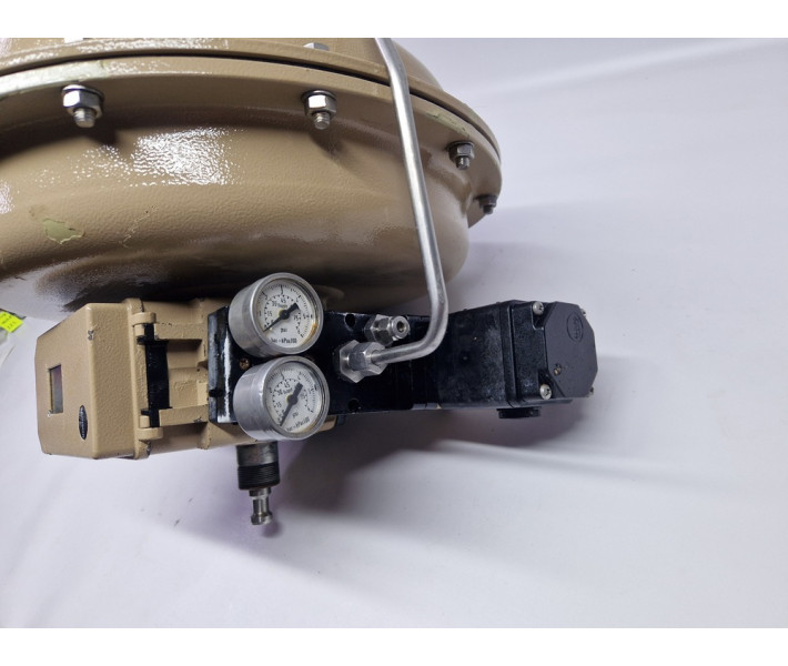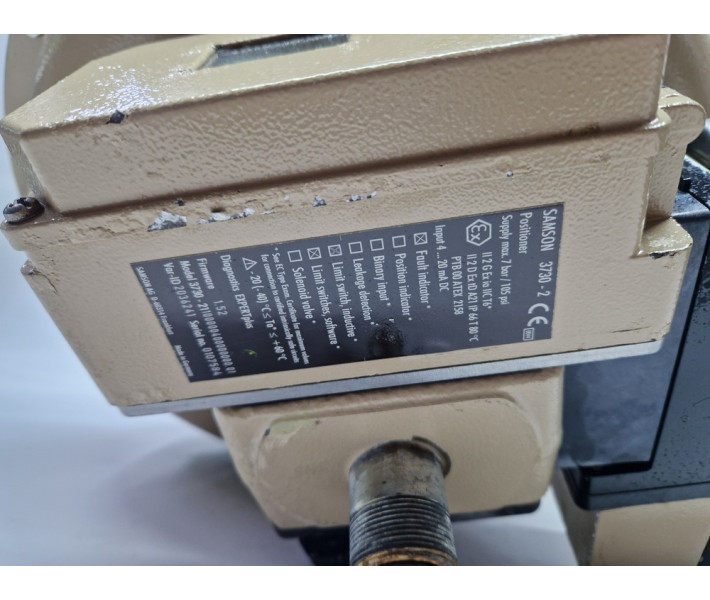 Електропневматичний позиціонер Samson Type 3730-2, який кріпиться до пневматичного мембранного приводу, що керує клапаном. Цей позиціонер використовується для точного регулювання положення клапана на основі електричного сигналу (4...20 мА DC) з системи керування.