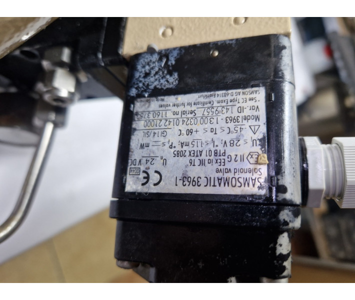 соленоїдний (електромагнітний) клапан Samsomatic Type 3963-1 виробництва Samson AG. Цей клапан перетворює електричні бінарні сигнали на пневматичні керуючі сигнали для керування пневматичними приводами з пружинним механізмом повернення в небезпечних зонах.